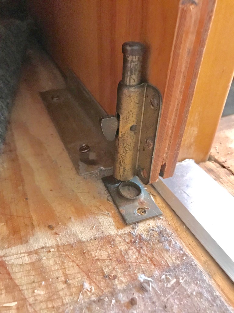 EDIT JULY 2022 – THE SLIDING DOOR WAS INSTALLED WRONG I EVENTUALLY POSTED SHOWING HOW IT SHOULD WORK SO DISREGARD ALL OF THESE LATCH PHOTOS. SLIDING DOOR FIX
