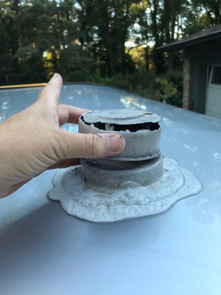 Right before the Vagabond was offered up and I had given up hope of having one, I bought a t@da – a somewhat hard to find product made by the dutchman RV company in 2008. I can’t keep both so I am prepping the t@da for sale. Yesterday when I was washing it the antenna was knocked loose, then when I touched the plumbing vent cover it literally crumbled. I ended up replacing them both and resealing everything. I’m glad the Vagabond does not have plastic bits that are destroyed by the sun! Based on the good condition – I think the T@da was used when it was new then parked for a while. I’m glad I looked at the roof when I did. It’s a cute little camper. I wish I had a giant shop and some lottery winnings so I could keep them all!