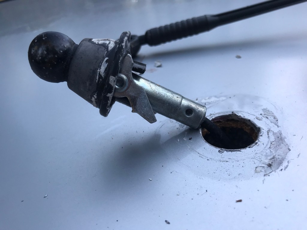 I rolled around under her yesterday to see if I could see why it leans a little. Seems like all it can be really is the springs. Perhaps they have worn unevenly. I did not see any cracks in them. The bottom is in good condition. The rear has the worst problems. This was all well fixed by prior owners but I can see that it rotted out at some point. Maybe the trunk door was open or leaked. Or maybe the one on there is a replacement? Someone put diamond plate on it. Can’t say why!