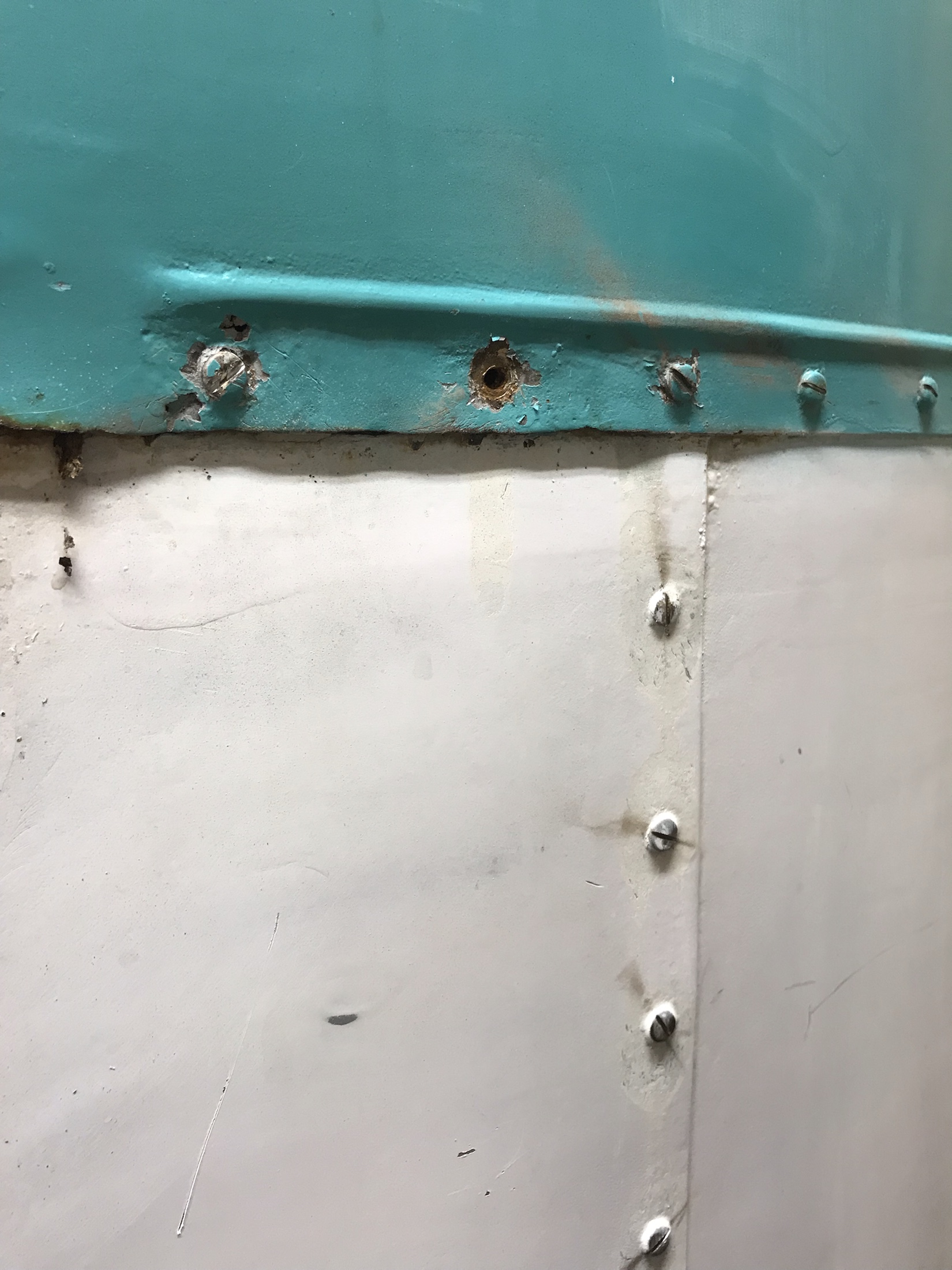 I tried to remove some body screws because it seems to me the only solution is to either patch that rusty area or replace the metal sheeting completely. I could only get one screw out!