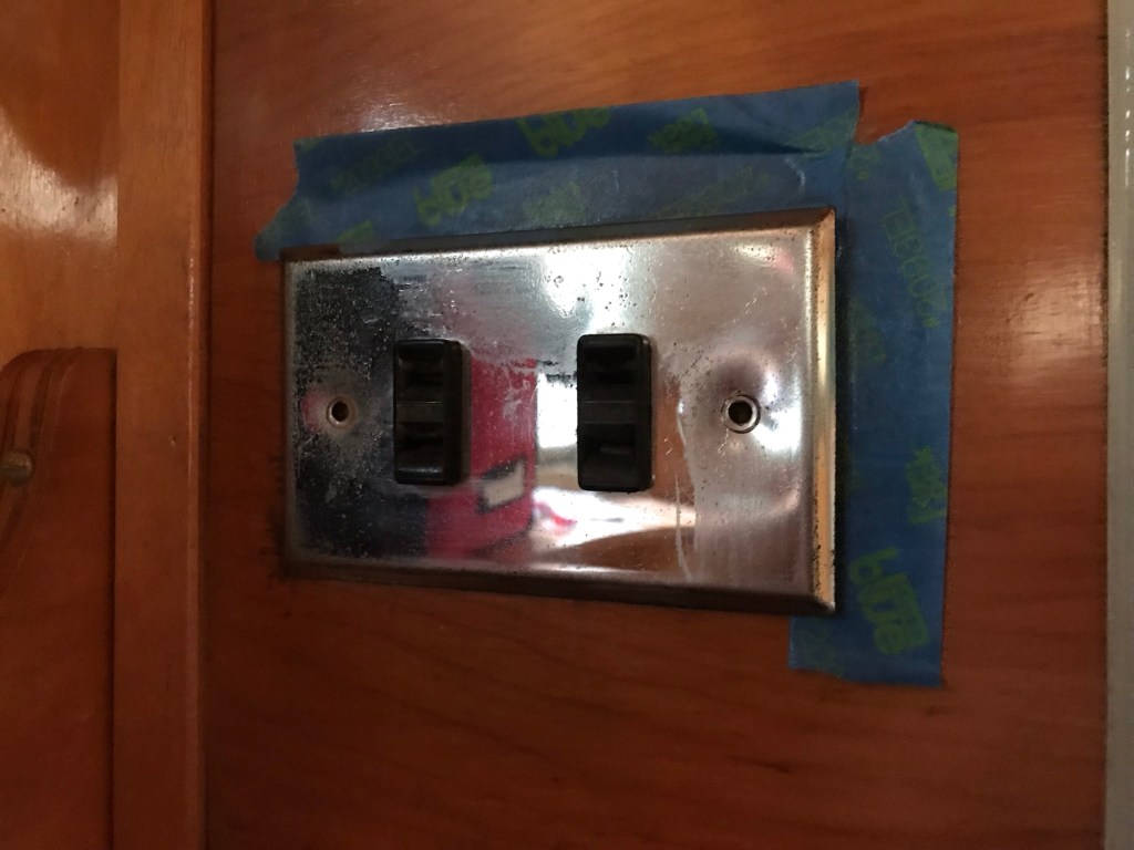 When I put the red sofa up for sale on marketplace the fellow that came to look at it turned out to be a fellow vintage trailer enthusiast and amateur restorer! I’m quick on my feet so I managed to get him to trade rewiring for the sofa. He did a great job – it’s all working great and the brakes are functioning well. I think I got the better end of the deal! The wiring was toast btw. I’m very glad I was not tempted to tow it without fixing it and that we replaced it all.