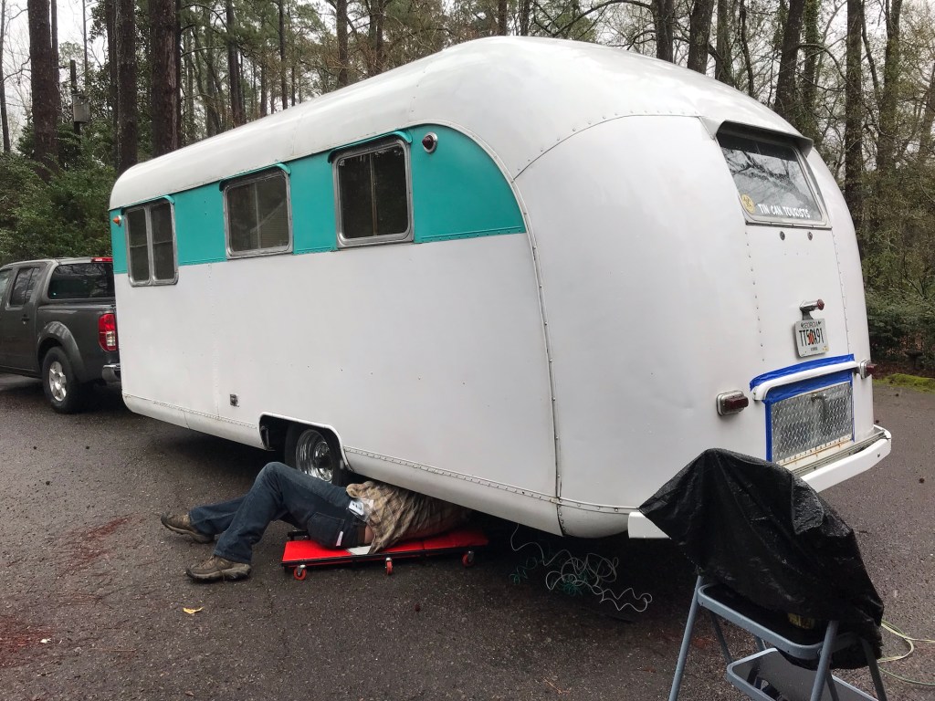 Because without functioning brakes the Vagabond exceeds the tow rating of my car (probably most vehicles really) – I had planned to rent a large pickup and take the trailer to a person several hours away to replace the the jacked up 4 pin plug with a 7 pin and hook up/service the brakes.
