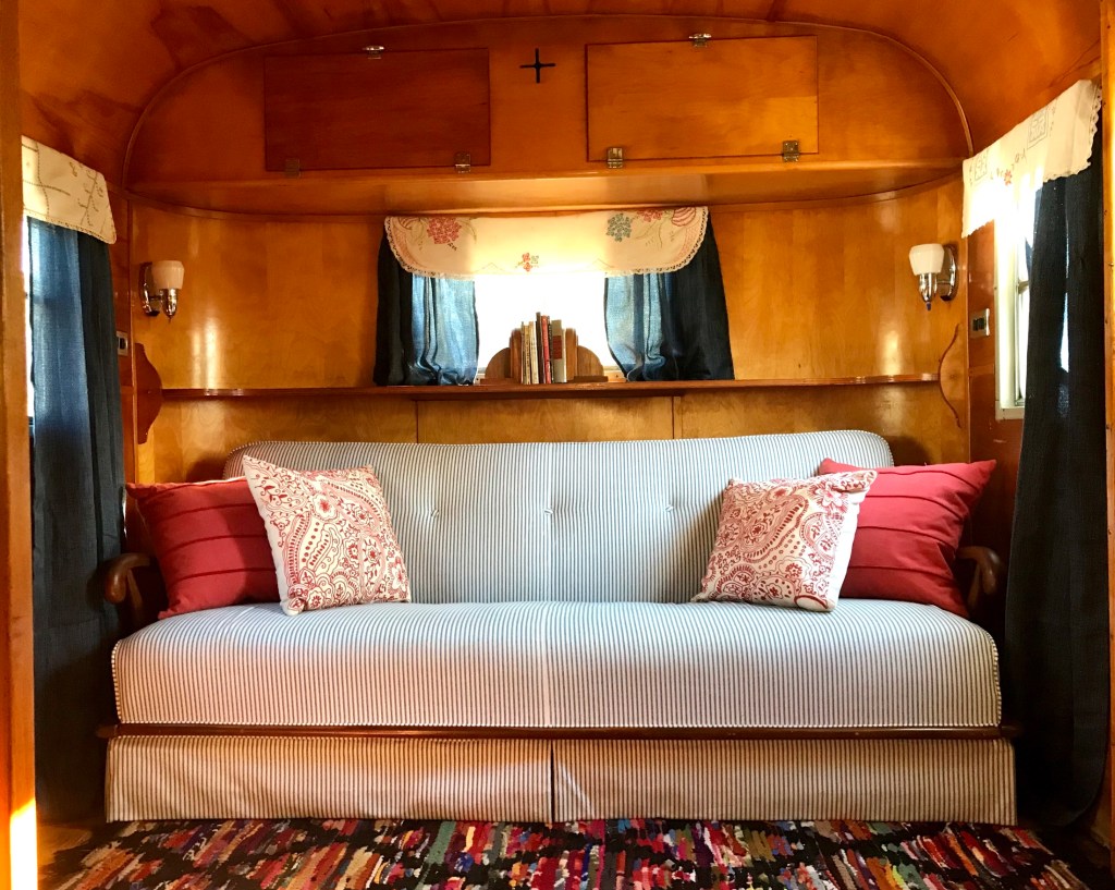 A few weeks ago I scored a 1950s click clack sofa from the original owner. Well, technically her parents were the original owners since they bought it when she was a baby. She was born in 1953 like the Vagabond so it’s definitely of the period.