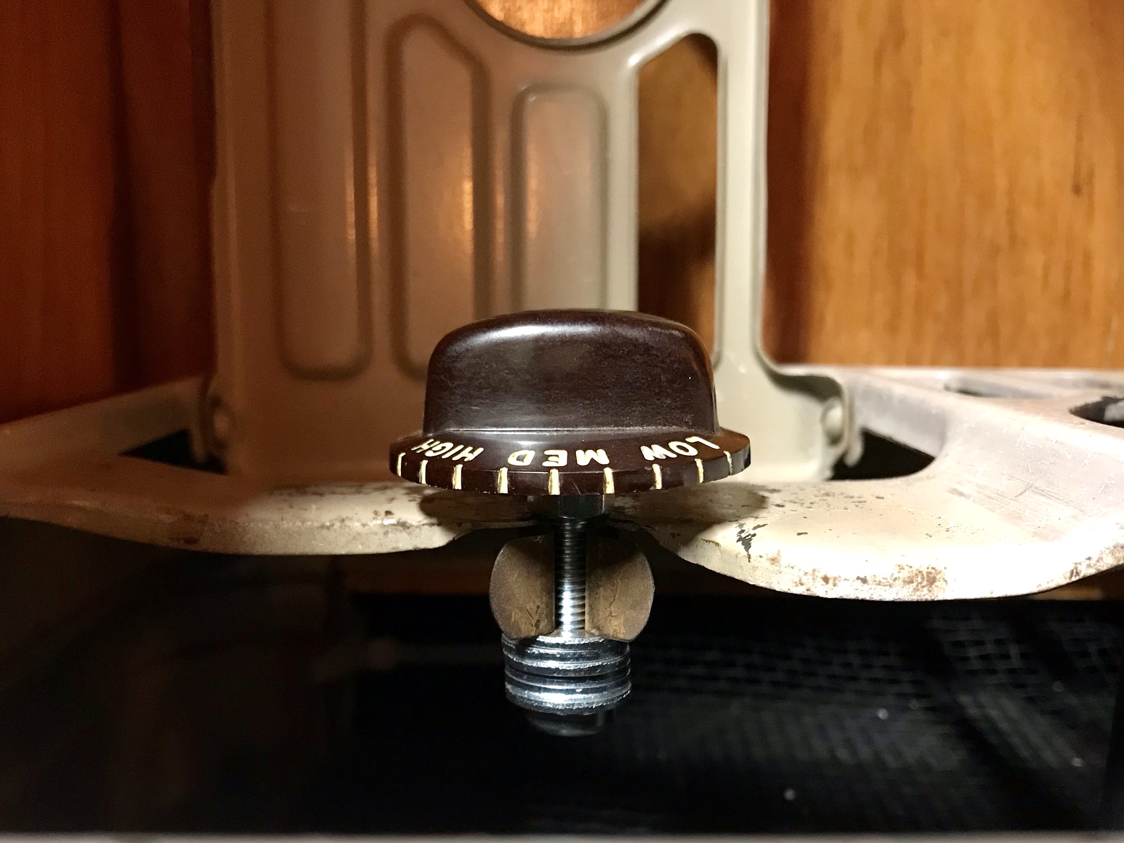 The knob was held onto the original control with a set screw so I just put it on a new bolt and used washers to get it to a good height. I think it looks good. I blocked the chimney pipe and wedged the little gate valve open so there will be some air coming out at a higher level and directed across the trailer.